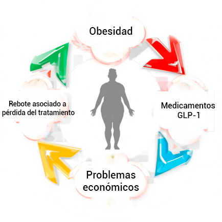 - Reganancia de peso: aunque la pérdida de peso puede ser similar a una bariátrica, al dejar de usarlos ocurre el fenómeno de rebote (reganancia de peso) habiendo gastado incluso más en 7 a 10 meses de tratamiento que lo que habría costado someterse a una Cirugía Bariátrica/Metabólica en nuestro Centro.