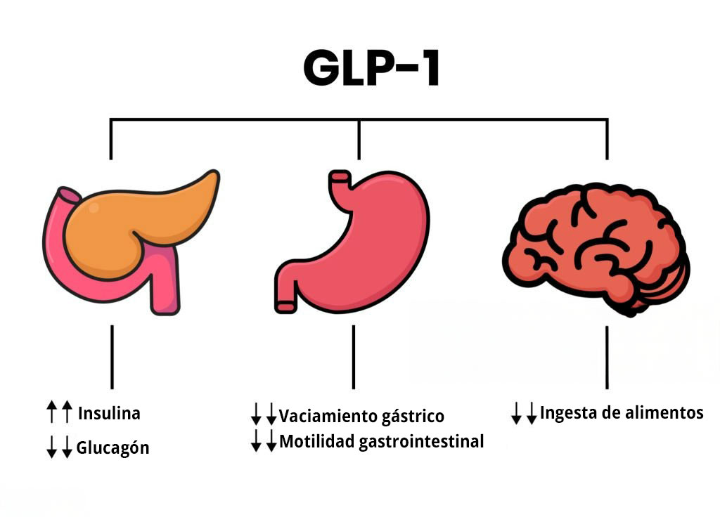 Estos medicamentos actúan sobre receptores de una hormona denominada “GLP-1” la cual sensibiliza la respuesta a la insulina. |